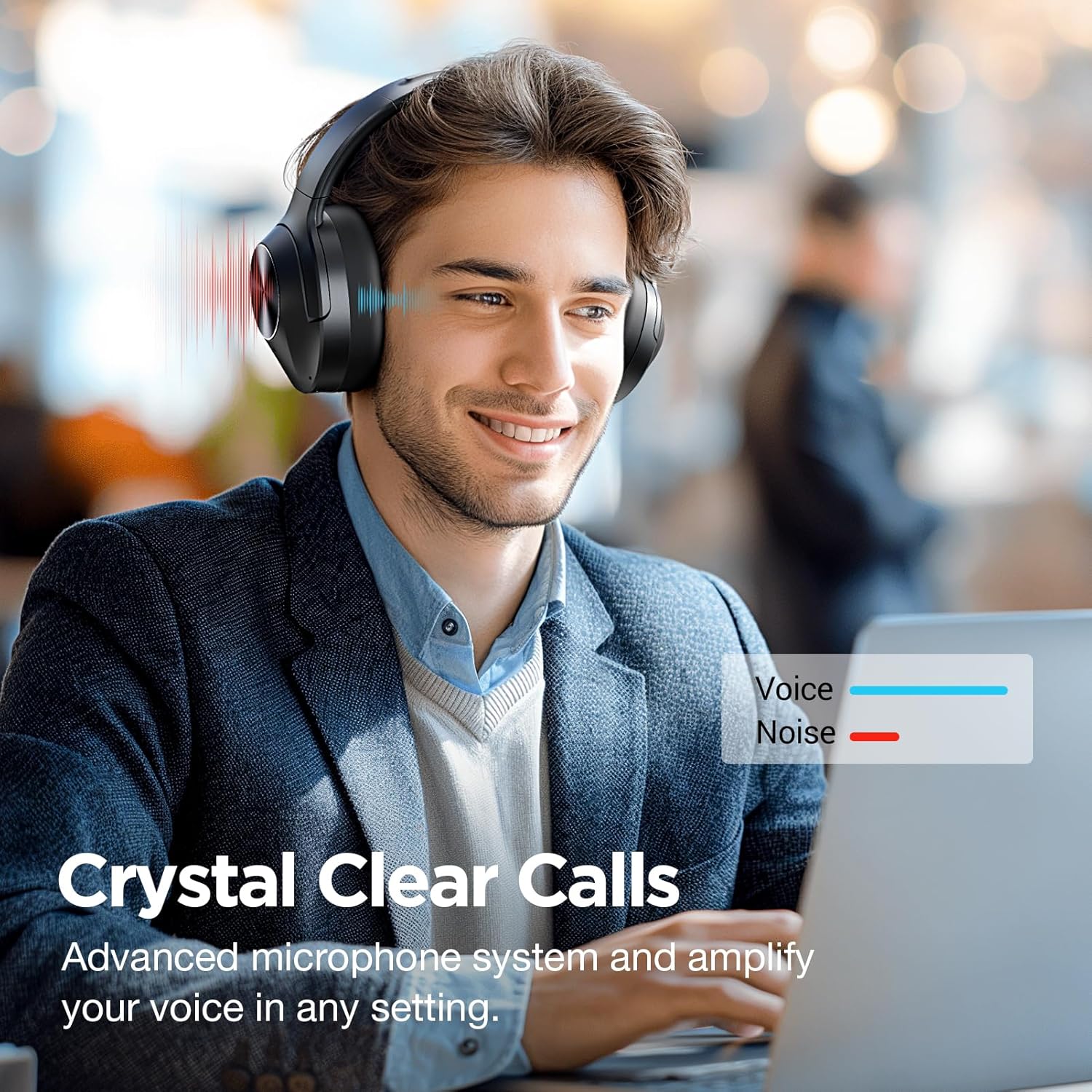 Upgrade Pro‑level Hybrid Active Noise Cancelling Headphones with HD Sound, Wireless Bluetooth Headphones Over The Ear Unequaled Comfort, Vivid Deep Bass, for Home Office Travel Birthday Gift, Black